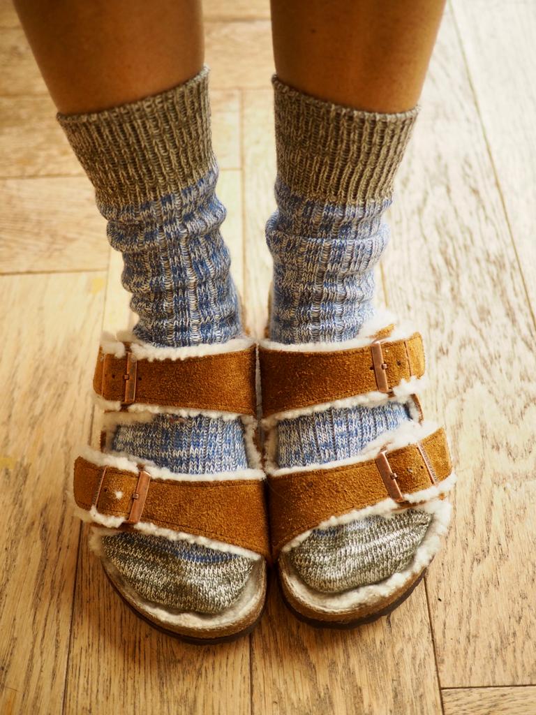 These Denim Blue Matilda ankle Cotton Socks inject colour and cosiness into your life with every step. Made with responsibly-sourced three-colour flecked cotton yarns, these gorgeous women’s shorter length cotton socks feature a timeless contrasting heel and toe and are perfect for everyday living.